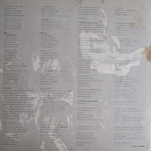 This submission is for the very first Japanese release.Comes in thick gatefold jacket with an obi strip and hojyu-hyou(re-order flap), a 4 page black and white insert with liner notes along with the English/Japanese lyrics transcriptions and an 8 page colored booklet with live pics and signatures.