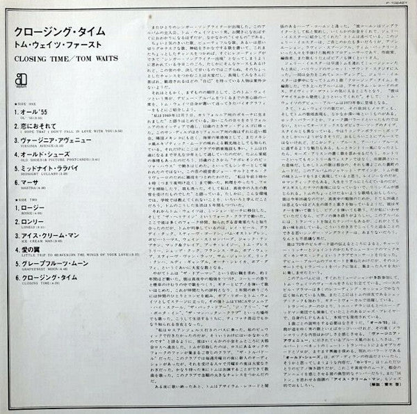 Tom Waits - Closing Time (Vinyl, LP, Album, Stereo) Good Plus (G+) / Very Good Plus (VG+)