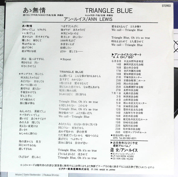 Ann Lewis (2) - あゝ無情 (Vinyl, 7", 45 RPM, Single) Very Good Plus (VG+) / Very Good Plus (VG+)
