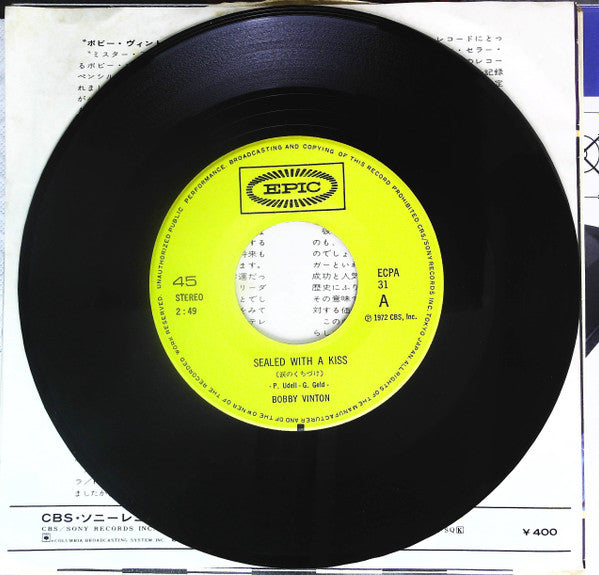 Bobby Vinton - Sealed With A Kiss = 涙のくちづけ (Vinyl, 7") Very Good (VG) / Very Good Plus (VG+)