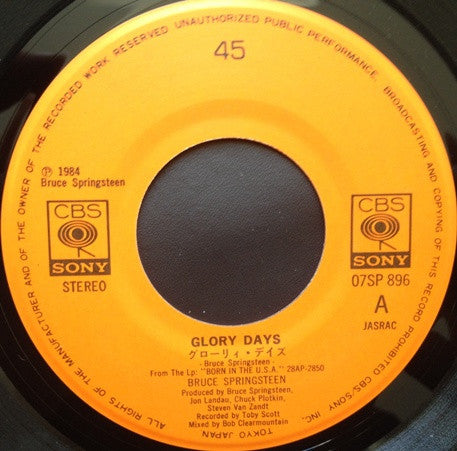 Bruce Springsteen - Glory Days (Vinyl, 7", Single, 45 RPM) Very Good Plus (VG+) / Very Good Plus (VG+)