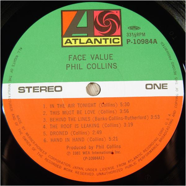 Phil Collins - Face Value (Vinyl, LP, Album) Very Good Plus (VG+) / Very Good (VG)