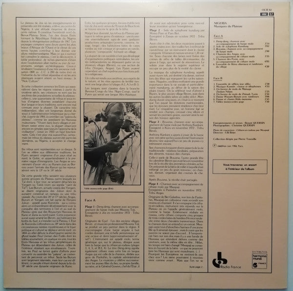 Title on the labels: MUSIQUES DU PLATEAU (Nigéria)