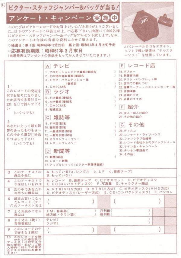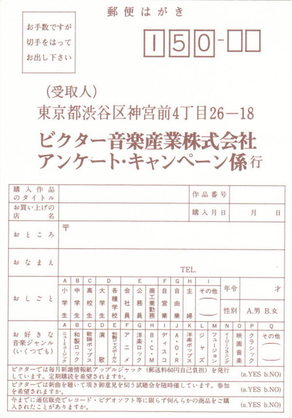Comes with booklet and hype sticker (this LP was released without obi!), survey postcard.