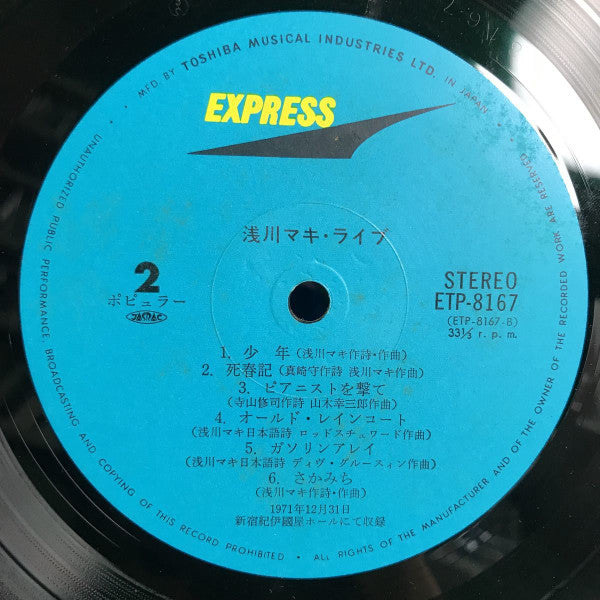Maki Asakawa - Live (Vinyl, LP, Album, Stereo) Very Good (VG) / Very Good (VG)
