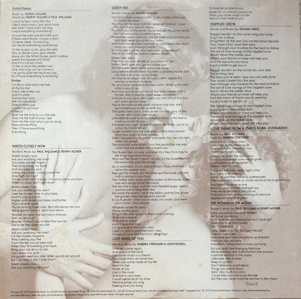 Gatefold sleeve.Printed inner sleeve with lyrics and credits.