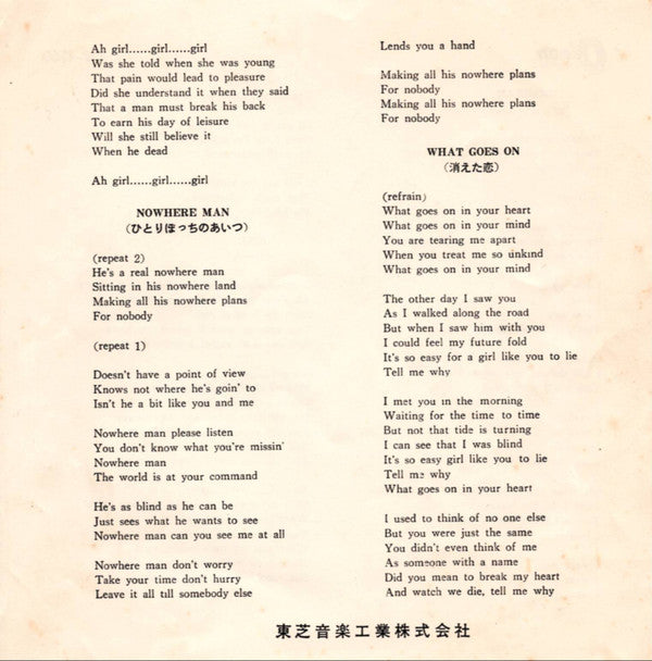 Released in a ''flipback'' picture sleeve with Japanese liner notes. Contains an lyrics insert in English.Issued two ways, black (this) and also with red vinyl