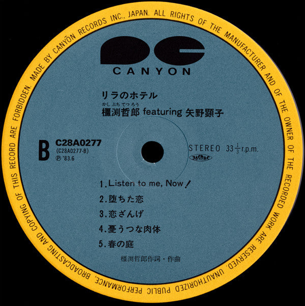 Tetsuro Kashibuchi - Hotel Lilas = リラのホテル (Vinyl, LP, Album) Very Good Plus (VG+) / Very Good Plus (VG+)