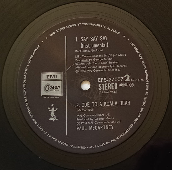 ℗1983 MPL Communications Inc.Manufactured by Toshiba EMI, Ltd., Japan