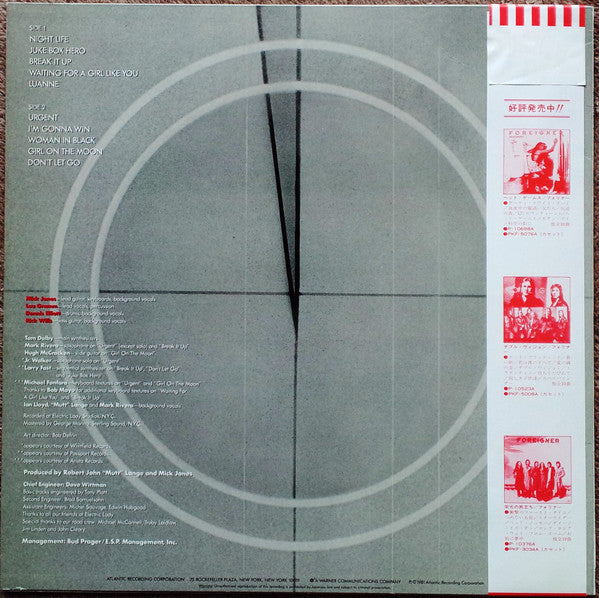 Issued with obi & 2 inserts: B&W single-sided Japanese liner notes insert & double-sided color glossy English lyrics insert.℗ & © 1981 Atlantic Recording Corporation