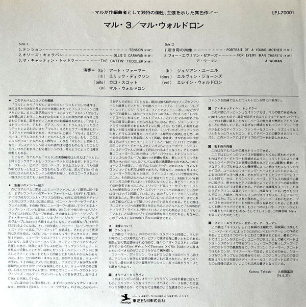 Mal Waldron - Mal/3 Sounds (Vinyl, LP, Album, Reissue) Good Plus (G+) / Very Good (VG)