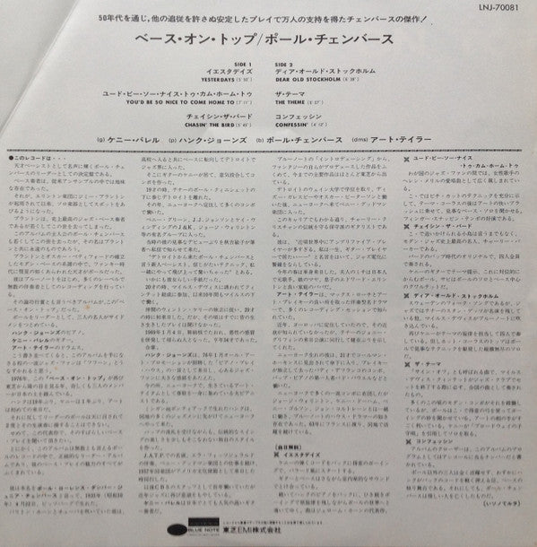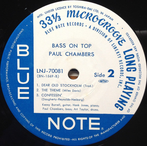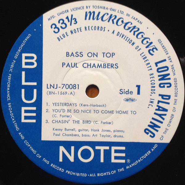 Paul Chambers Quartet - Bass On Top (Vinyl, LP, Album, Reissue, Mono) Near Mint (NM or M-) / Very Good Plus (VG+)