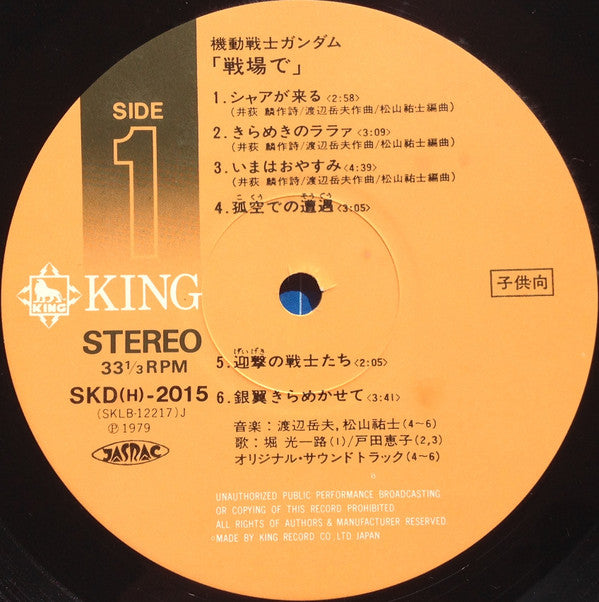 Soundtrack to the 1979 Mobile Suit Gundam TV anime series.Gatefold sleeve with obi and glued-in insert.
