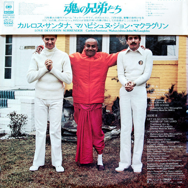 White text over grey text: SOPL 200 [CBS/Sony logo] CARLOS SANTANA MAHAVISHNU JOHN MCLAUGHLIN LOVE DEVOTION SURRENDER SOPL 200