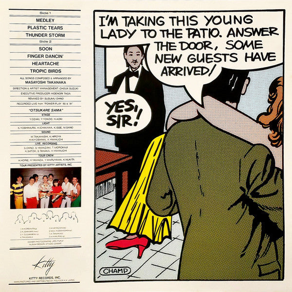 Recorded Live from "Power Play '80 & '81".Comic-style inner, "Takanaka Kitty Guitar Fantasia" sticker, obi strip.
