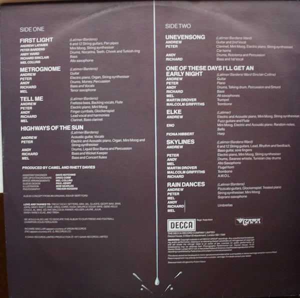 Camel - Rain Dances (Vinyl, LP, Album, Stereo) Very Good Plus (VG+) / Very Good Plus (VG+)