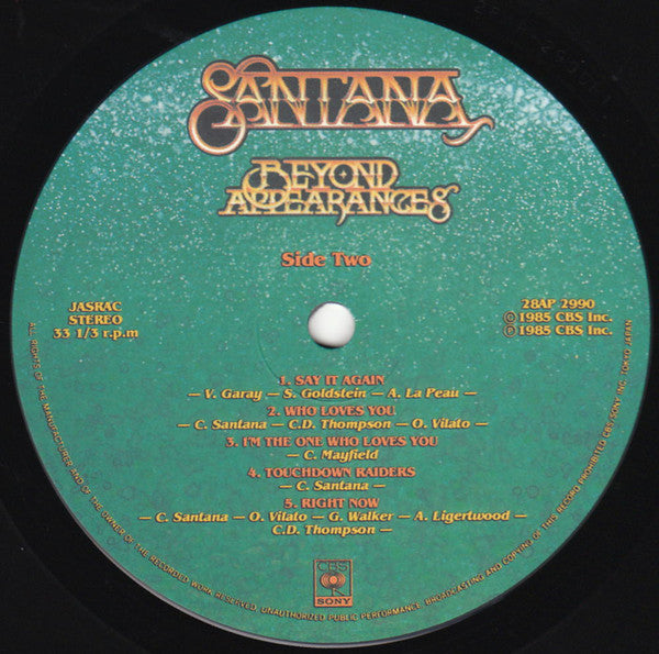 Santana - Beyond Appearances (Vinyl, LP, Album) Near Mint (NM or M-) / Very Good Plus (VG+)