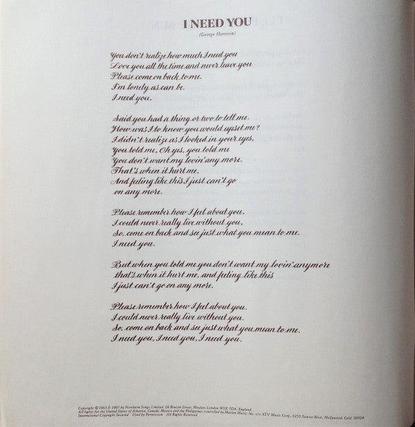 A1 to A5, A7, B2 to D5: © Northern Songs Limited. All right for the USA, Canada, Mexico and the Philippines controlled by Maclen Music, Inc. c/o ATV Music Corp.