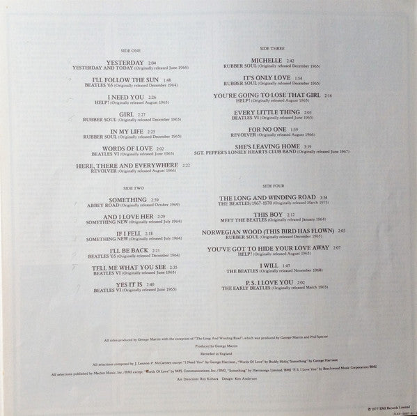 All selections published by Maclen Music, Inc./BMI except A6 by MPL Communications Inc./BMI, B1 by Harrisongs Limited/BMI, D6 by Beechwood Music Corp./BMI.