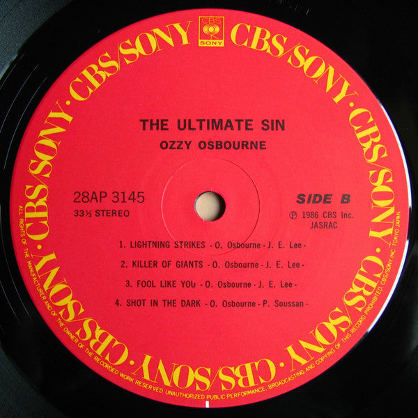 Ozzy Osbourne - The Ultimate Sin = 罪と罰 (Vinyl, LP, Album) Very Good Plus (VG+) / Very Good Plus (VG+)