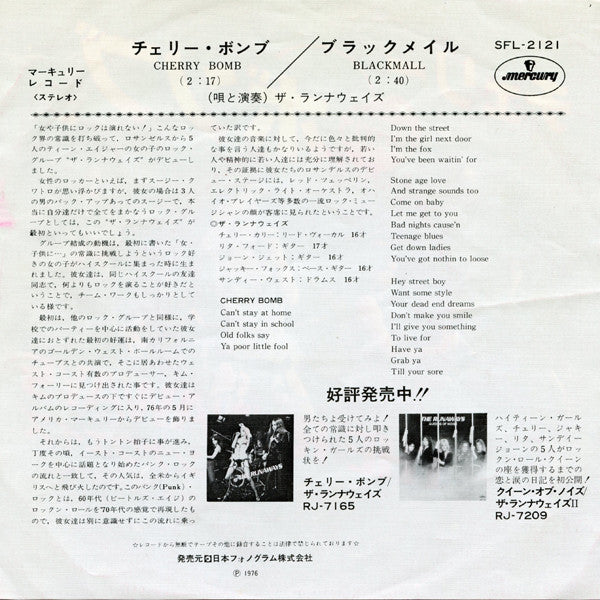 The Runaways - Cherry Bomb (Vinyl, 7", 45 RPM, Single, Reissue, Stereo) Very Good Plus (VG+) / Good Plus (G+)
