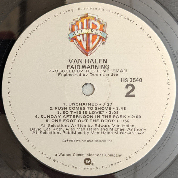Van Halen - Fair Warning (Vinyl, LP, Album) Very Good (VG) / Very Good (VG)