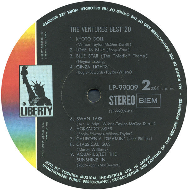 The Ventures - Best 20 (Vinyl, LP, Compilation, Stereo) Good Plus (G+) / Very Good (VG)