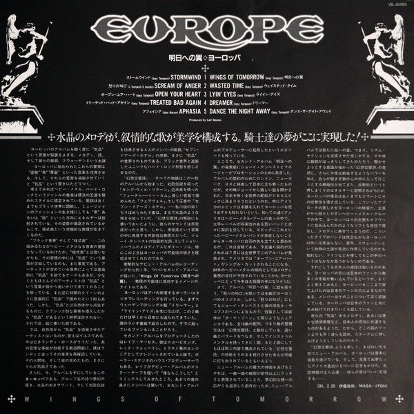 Europe (2) - Wings Of Tomorrow = 明日への翼 (Vinyl, LP, Album) Very Good Plus (VG+) / Very Good Plus (VG+)