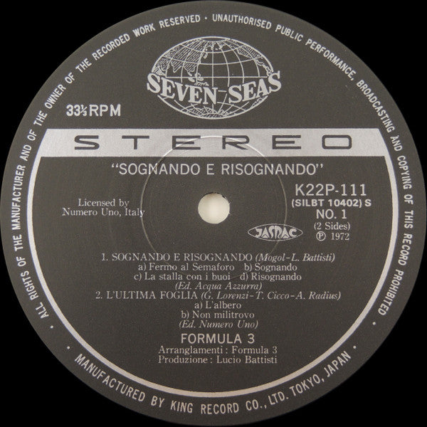 Formula 3 - Sognando E Risognando (Vinyl, LP, Album, Reissue) Very Good Plus (VG+) / Very Good (VG)