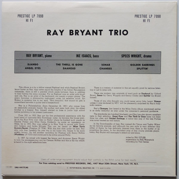 Ray Bryant Trio - Piano Piano Piano Piano... (Vinyl, LP, Album, Reissue, Mono) Very Good Plus (VG+) / Very Good Plus (VG+)
