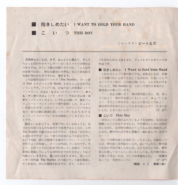 The Beatles - 抱きしめたい = I Want To Hold Your Hand / こいつ = This Boy (7", 45 RPM, Single, Mono) - Very Good (VG) / Very Good (VG)