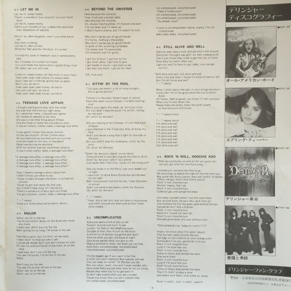 Came with an obi and 4 page insert with liner notes along with the English lyrics transcriptions. 1st and last page were parallel to the inner sleeve bag of the US pressings(color photo of Rick and live group photo with track listing, credits etc)Barcode and Other Identifiers