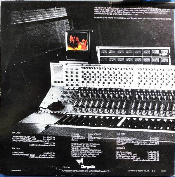 This album is a truthful recording of Ten Years After with no overdubs or additives. What you hear is what happened on the night. Recorded over four nights in Amsterdam, Rotterdam, Frankfurt and Paris with the Rolling Stones' mobile recording truck and later mixed from sixteen track to stereo at Olympic Studios in London.In answer to the inferior live recordings sold illegally: this is the official Ten Years After bootleg.