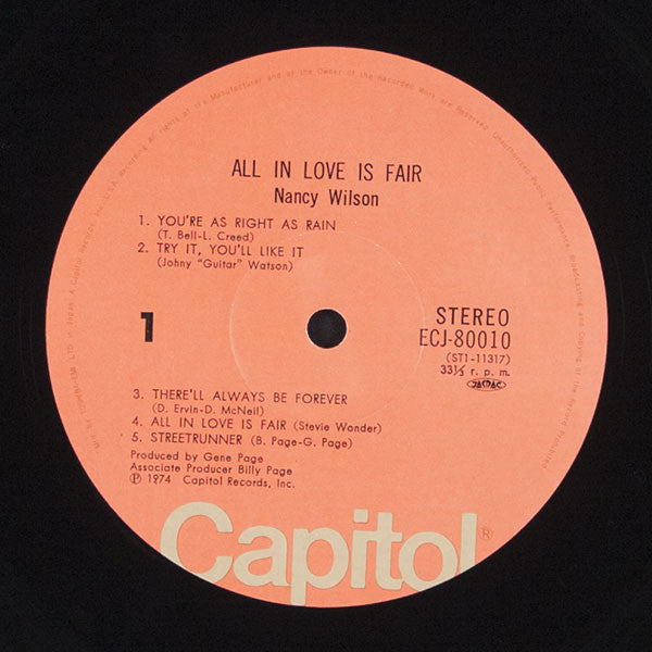 Nancy Wilson - All In Love Is Fair (LP, Album) - Very Good Plus (VG+) / Very Good (VG)