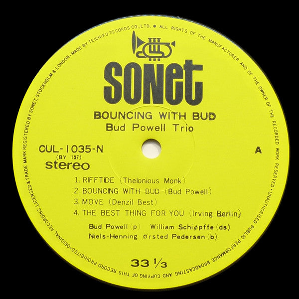 The Bud Powell Trio - Bouncing With Bud (LP, Album, Reissue, Stereo) - Near Mint (NM or M-) / Very Good Plus (VG+)