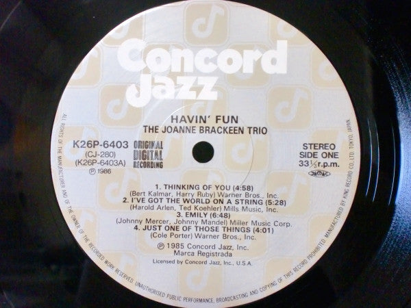 The Joanne Brackeen Trio - Havin' Fun (LP, Album) - Very Good Plus (VG+) / Very Good (VG)