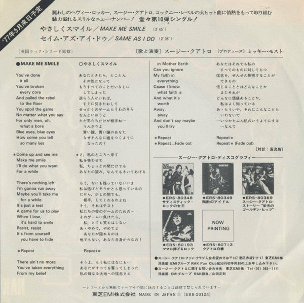 Suzi Quatro - Make Me Smile (7", 45 RPM) - Very Good (VG) / Very Good Plus (VG+)