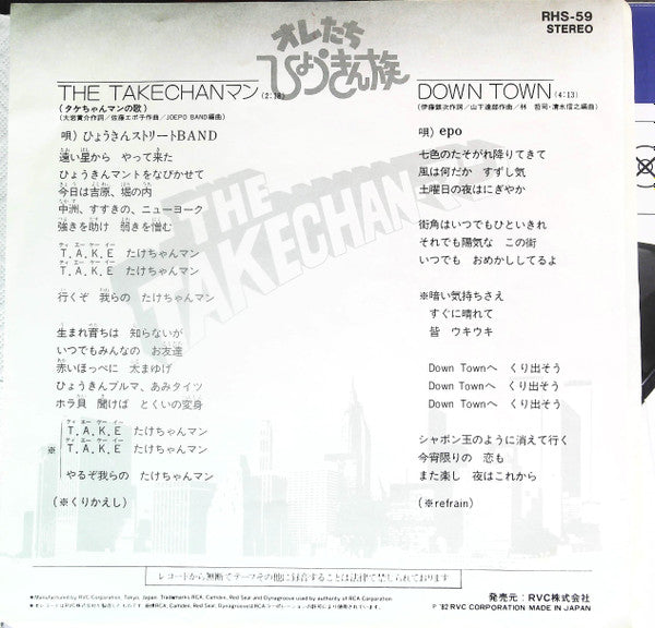 ひょうきんストリートBand - The Takechan-マン: タケちゃんマンの歌 / Down Town (7", 45 RPM, Single) - Very Good Plus (VG+) / Very Good Plus (VG+)