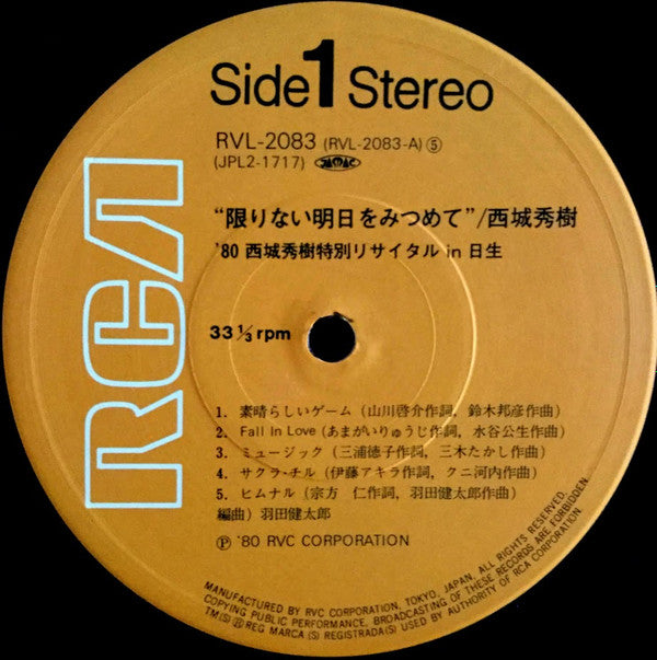 Title | 限りない明日を見つめて ~'80 西城秀樹特別リサイタル In 日生~ = Hideki Saijo Special Recital |