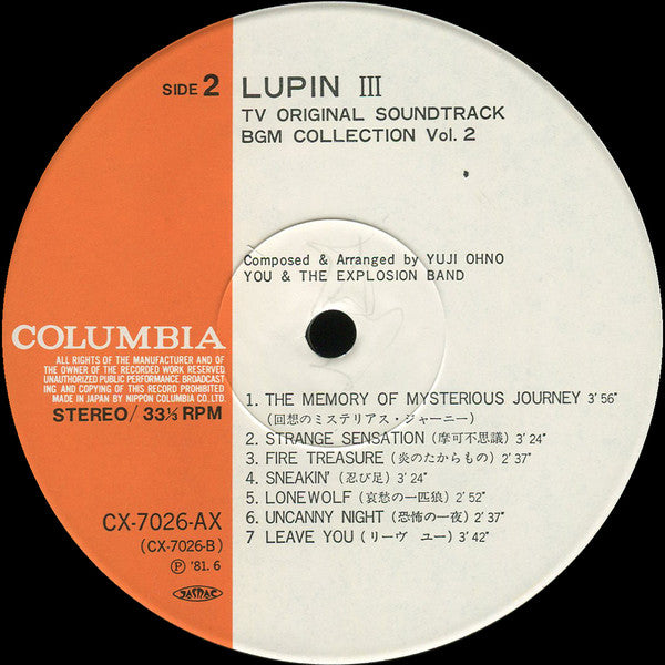 You & The Explosion Band - Lupin The 3rd - TV Original Soundtrack BGM Collection Vol. 2 = ルパン三世 BGM集 TVオリジナル・サウンドトラック Vol. 2 (LP) - Near Mint (NM or M-) / Very Good Plus (VG+)