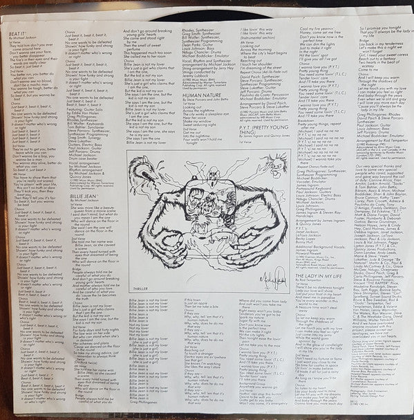 LP housed inside a dust sleeve with lyrics and drawings by Michael Jackson.