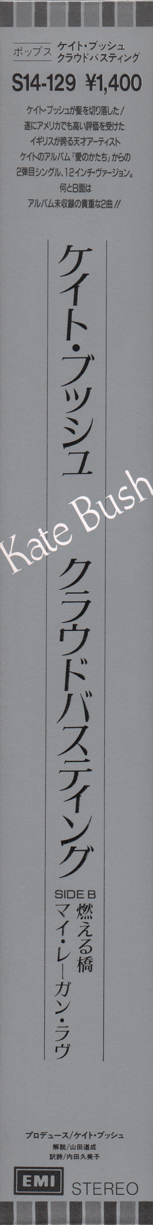 In card, spined sleeve with obi and single-sided insert. Insert includes liner notes in Japanese and lyrics to Cloudbusting in English and Japanese.Ⓟ 1985 Original Sound Recordings made by Novercia Ltd.
