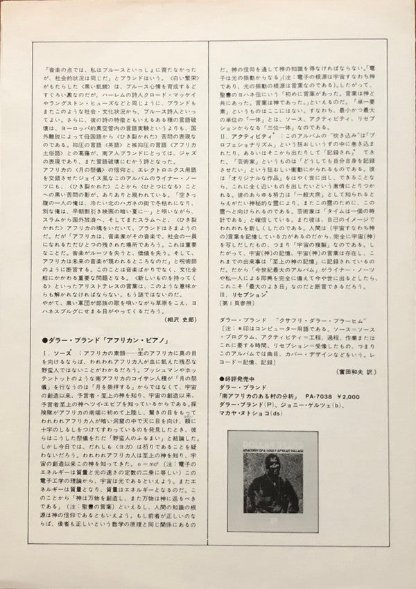 Dollar Brand - African Piano (LP, Album) - Very Good (VG) / Very Good Plus (VG+)