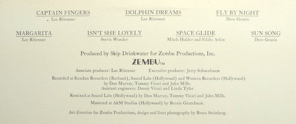 Produced for Zembu Productions, Inc.Recorded at Kendun Recorders (Burbank), Sound Labs (Hollywood)