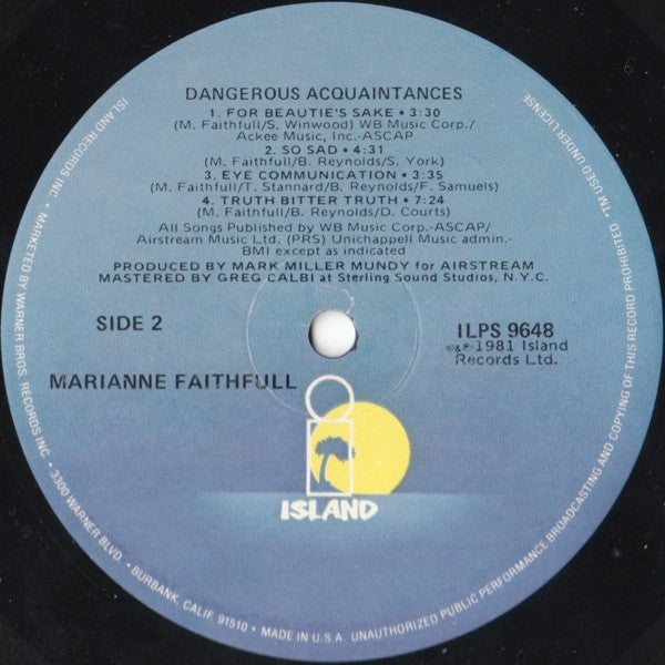 Marianne Faithfull - Dangerous Acquaintances (LP, Album) - Very Good Plus (VG+) / Very Good Plus (VG+)