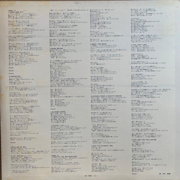 Gatefold sleeve with printed lyrics inside. Japanese lyric sheet. Plain inner sleeve.