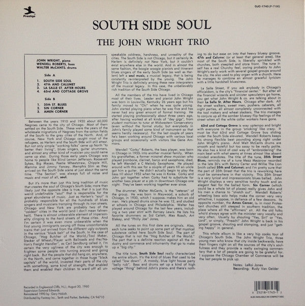 The John Wright Trio - South Side Soul (LP, Album, Limited Edition, Reissue, Remastered, Stereo) - Very Good Plus (VG+) / Very Good Plus (VG+)