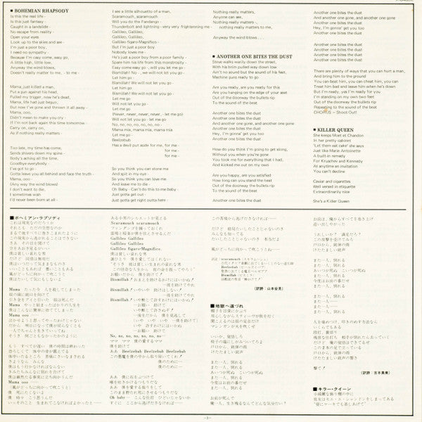 Tracks A8 (Under Pressure) and B4 (Teo Torriatte) are included in the Japan press of the LP but not in the other releases from other countries where Bicycle Race and Seven Seas Of Rhye appear instead.