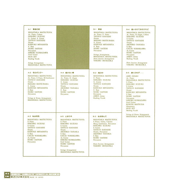 With obi strip and a gatefold insert with lyrics and credits.Prologue (track 1 on side A) is not numbered on center label, and crossfades to 影絵の街 (track A2), but does have distinct banding on the record.