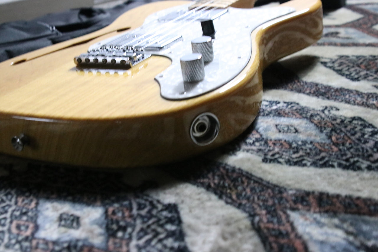 The "TN72" is a model that follows the 70's style Thinline Telecaster.The key points are its hollow structure made of ash, the unique appearance and lightweight appearance with an "F hole".